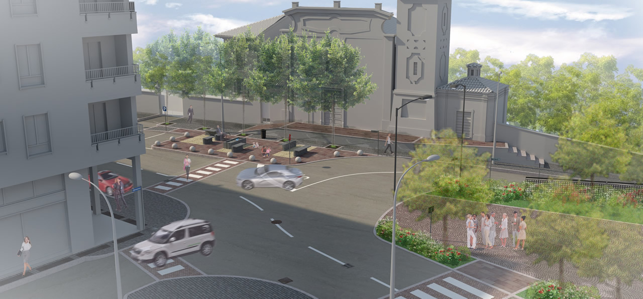 Il progetto prevede la riqualificazione estetica e funzionale della piazza della chiesa parrocchiale di Concesa, frazione di Trezzo sull’Adda (MI), attraverso il ridisegno delle carreggiate e la conseguente rimodellazione degli spazi pedonali lungo i margini.