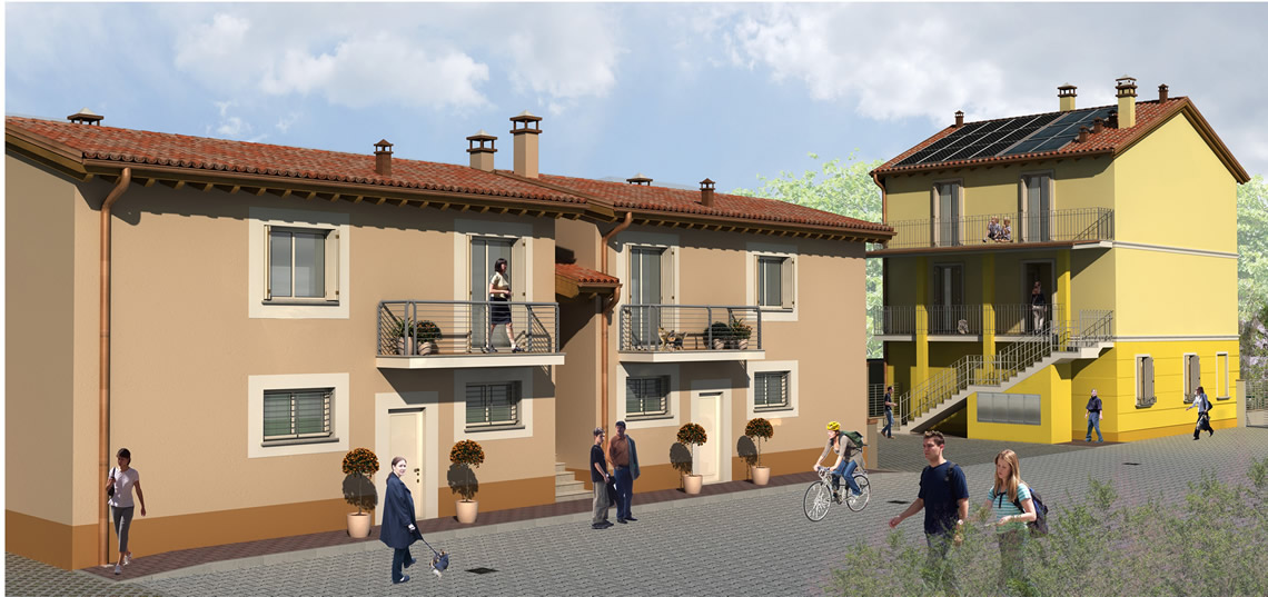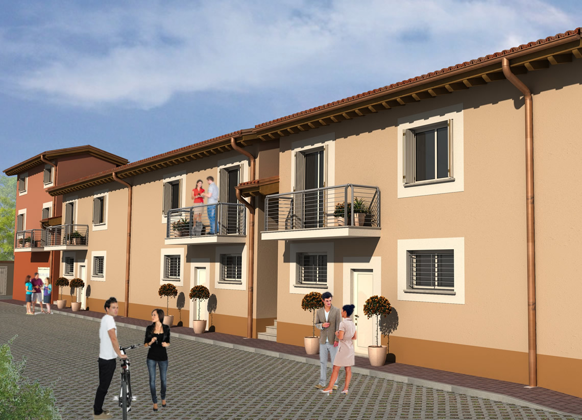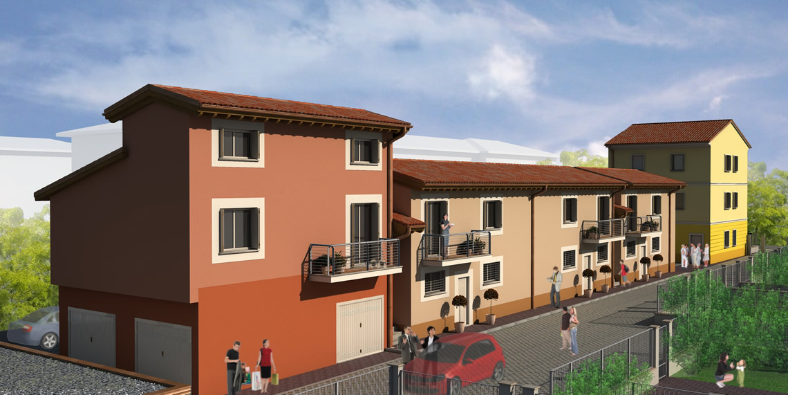 Progetto per il recupero di una palazzina esistente, la realizzazione di nuovi appartamenti in villa e di un edificio residenziale autonomo in un contesto periurbano ai margini della città di Cremona.