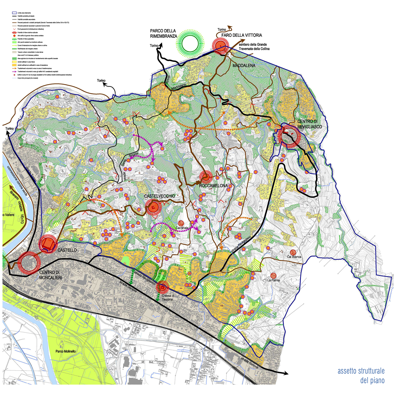 La variante ha per obiettivo la riqualificazione e valorizzazione dell’ambito collinare di Moncalieri, riconfigurando i margini urbani e tutelando le aree libere lungo i versanti, per minimizzare il consumo di suolo ed allo scopo di favorire le attività agricole, agrituristiche e ricettive.