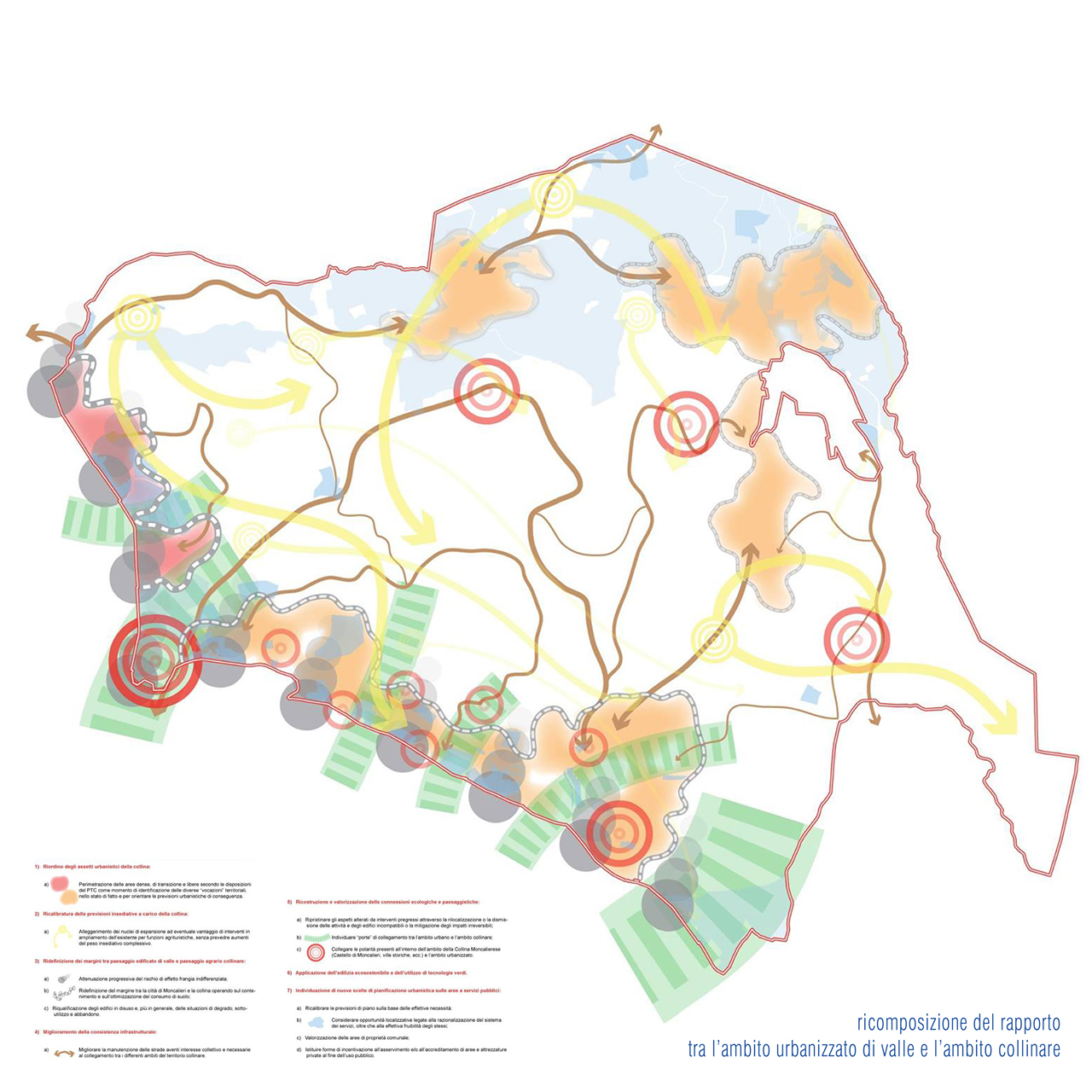 A questo fine lo strumento urbanistico effettua una analisi di idoneità per stabilire quali previsioni edificatorie eliminare e quali incentivi concedere per l’insediamento di attività strategiche per il rafforzamento delle vocazioni territoriali del contesto collinare.